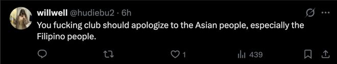 “俱乐部应当对亚洲人民道歉,尤其是对菲律宾人民道歉。”